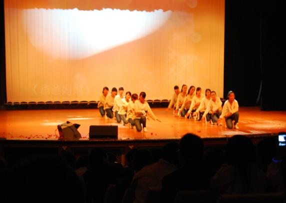 2、为了2012级的迎新晚会,我们班上的同学们积极出表演节目,在仓促的时间里,我们每天晚上一遍又一遍的排练着,错了又改,改了又在继续练,就这样一遍又一遍的重复着,终于,我们的手语舞《爸爸妈妈》得到了老师的认可竞选上了,在宝山的大礼堂里,我们带来了精彩的表演