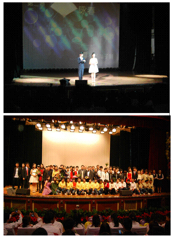 同时,在这次迎新晚会中,我们班的肖薇还担任了晚会的主持人,和宝山的师兄师姐一起主持最终晚会取得圆满成功!