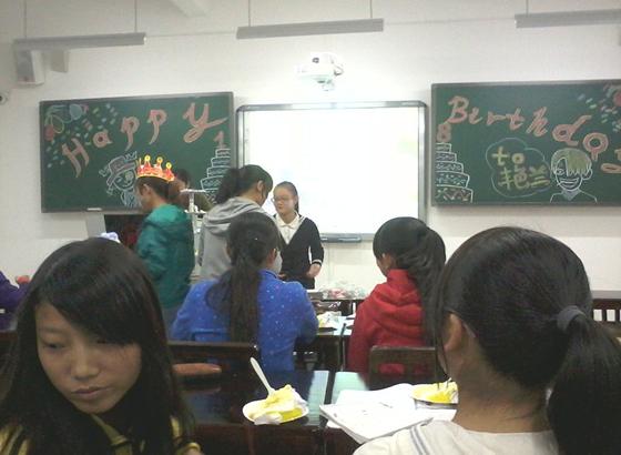 班上集体为王艳兰同学过生日,我们集体吃生日蛋糕,集体唱生日歌为她祝福