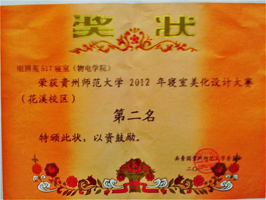 6、除了参加体育活动取得好成绩之外,我们还参加了寝室文化评比活动,在班委和全班同学的共同奋斗下,我们取得了第二名优异成绩